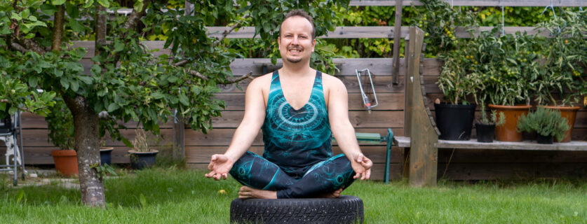 Easy pose or Sukhasana is an easier alternative to lotus pose, which is less intensive for the knees and requires less external hip rotation. It is a common default sitting pose.