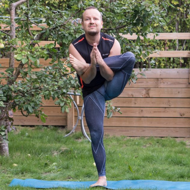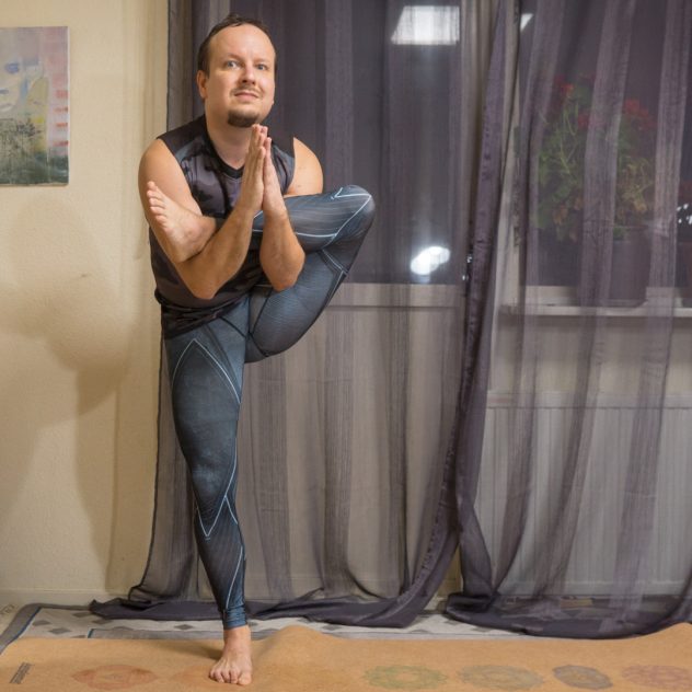 A good hip opener and standing balance. Gaze in front of you. Commonly used with hands in anjali mudra.